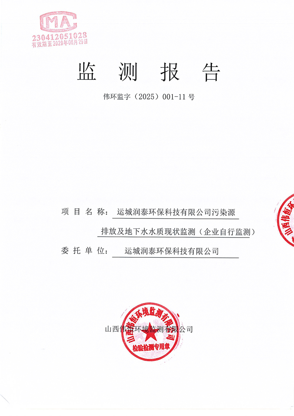 2025年潤泰環(huán)保九月份自行監(jiān)測報告
