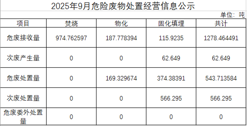 2025年九月危險廢物處置經(jīng)營信息公示